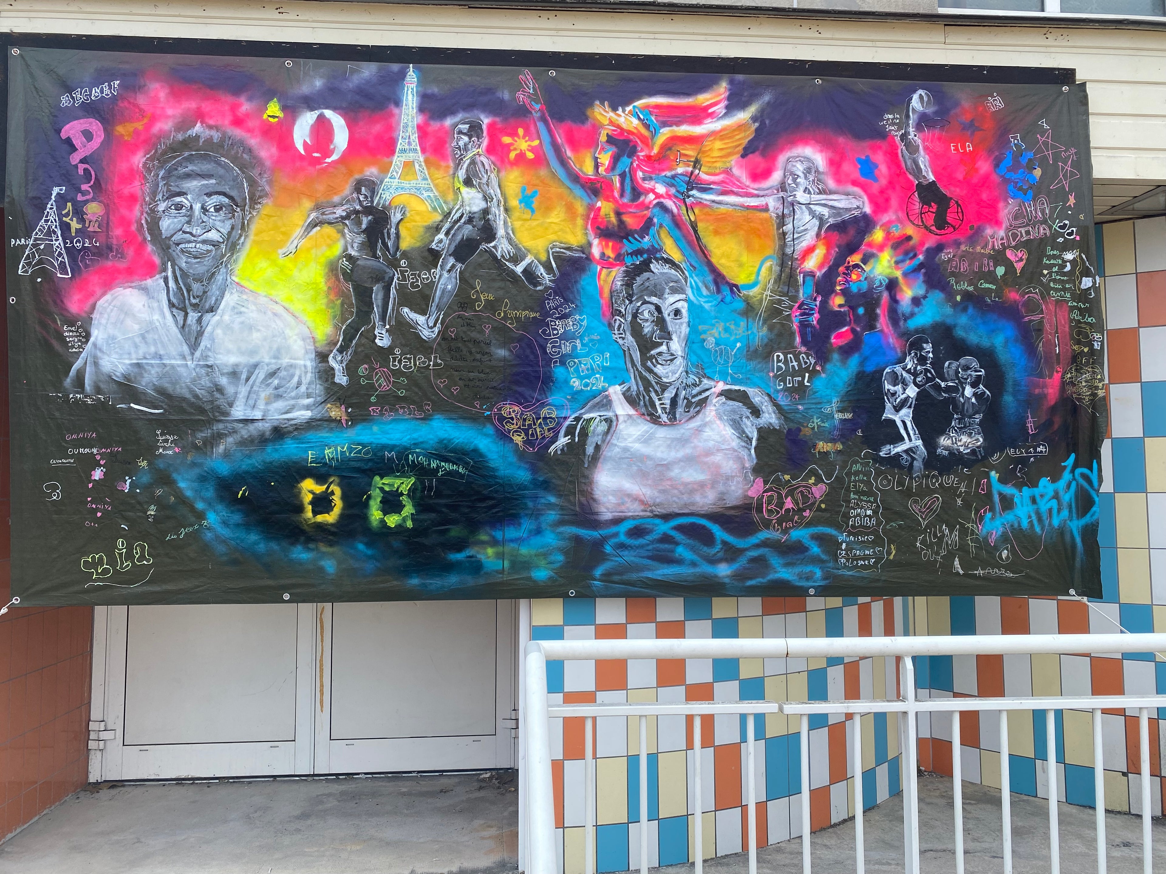 Venez admirer notre fresque murale, une œuvre unique qui embellit notre quartier ! Colorée et inspirante, cette fresque raconte l’histoire locale et célèbre la diversité de notre communauté.