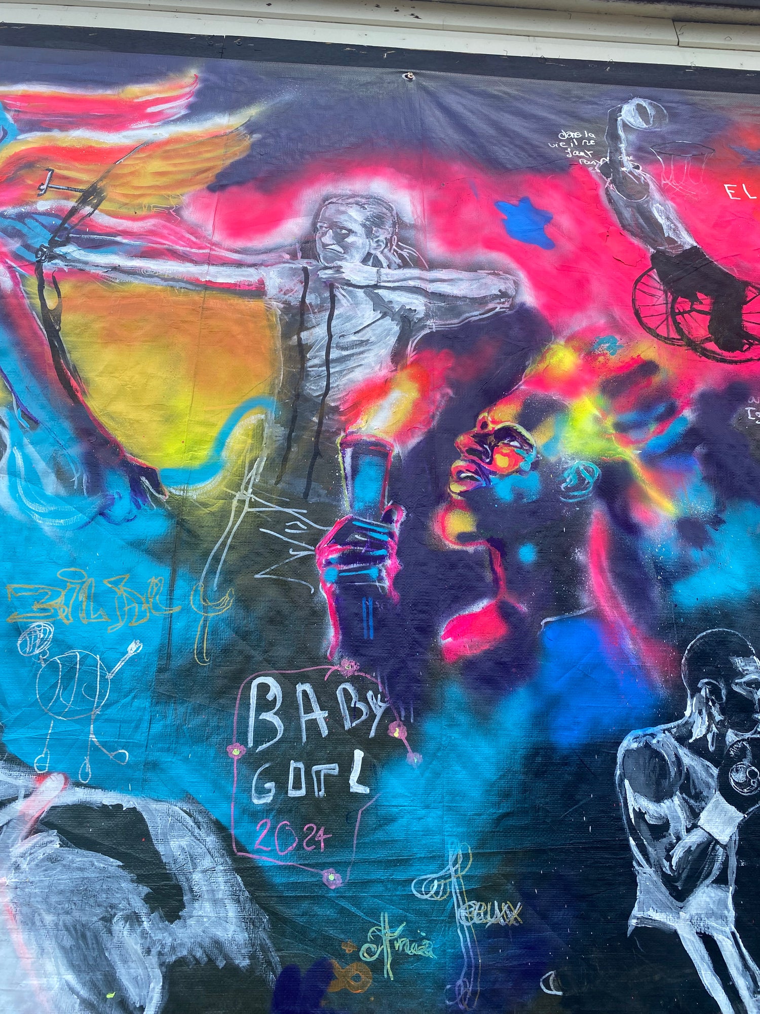 Elle combine modernité et tradition, invitant chaque passant à faire une pause et à se laisser captiver. Que vous soyez amateur d'art ou simple curieux, cette fresque est une découverte qui vous plongera dans un univers visuel fascinant et empreint de sens.